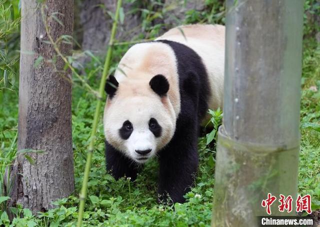 大熊猫“福宝”今年4岁,于4月3日结束在韩国的生活,返回中国。与公众见面前,“福宝”顺利适应了运输、隔离检疫、融入种群的各个环节,整体生活稳定,状态良好。